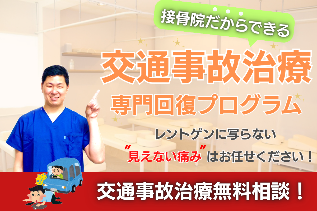 そして、当院では交通事故に特化した治療を確立しており、患者様の症状に合わせた治療を行います。