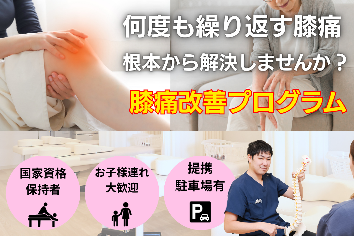 膝の痛みを我慢して過ごしていると、全ての負担が腰や肩などにも及ぶため、早期治療をお勧めしています。