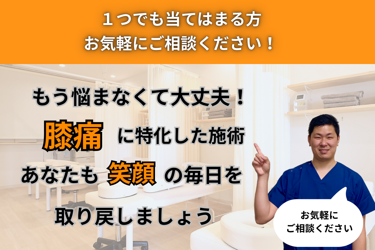 膝痛の専門家として、一人ひとりに寄り添った施術を致します。