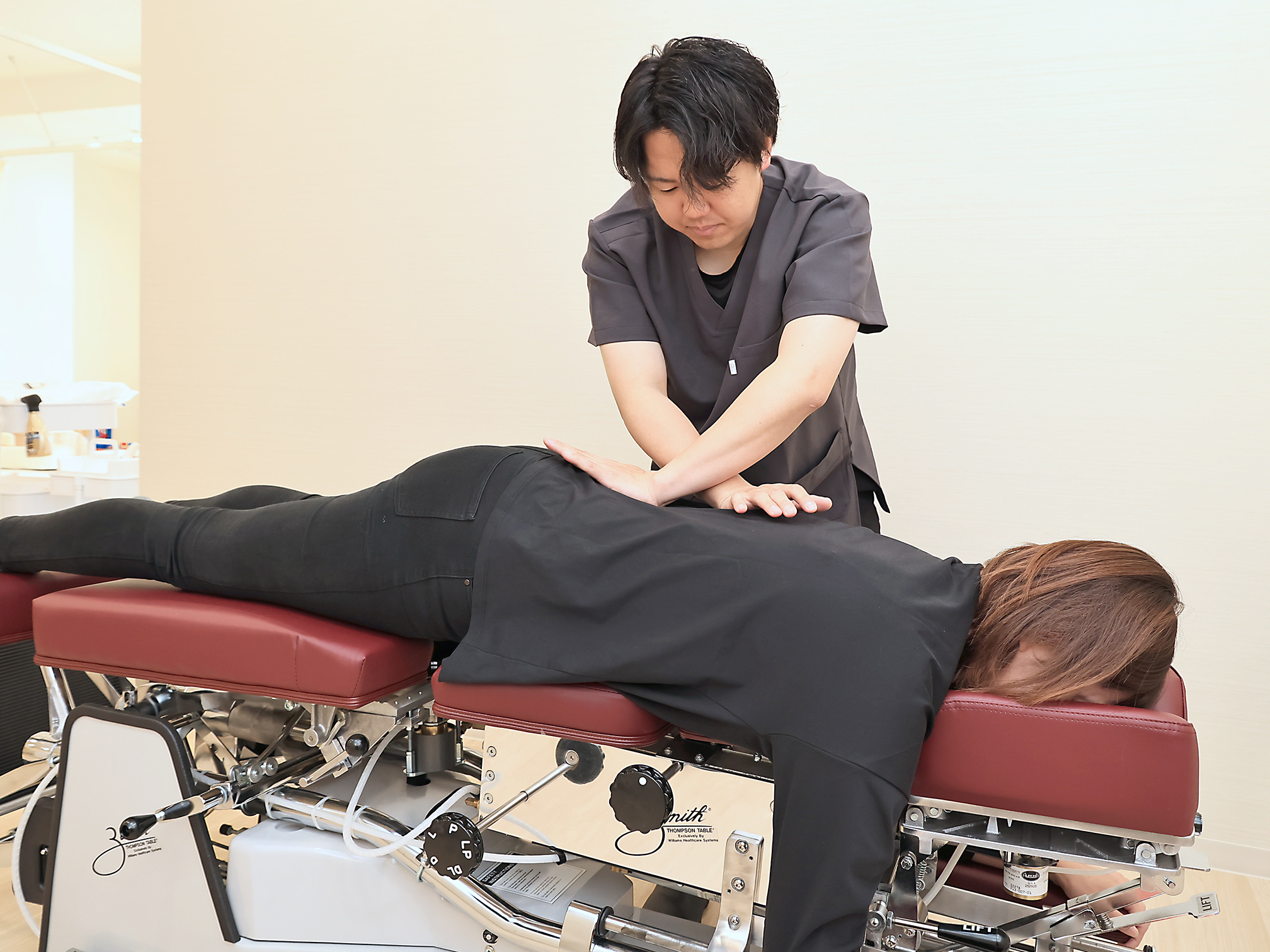 骨盤矯正ではなるべく刺激の少ない施術を行います。