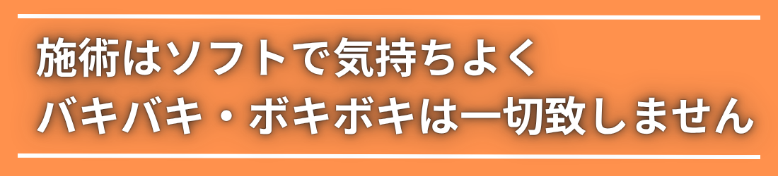 当院では臨床経験5万件以上の施術歴がある院長が徹底した技術指導を行った施術者が担当致しますので、一人ひとりに合わせたオーダーメイド施術が可能です。