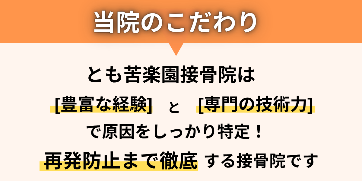 そのため一時的に良くなったと思っても痛みがまたぶり返してしまったり、そもそも良くならないことも多くあります。