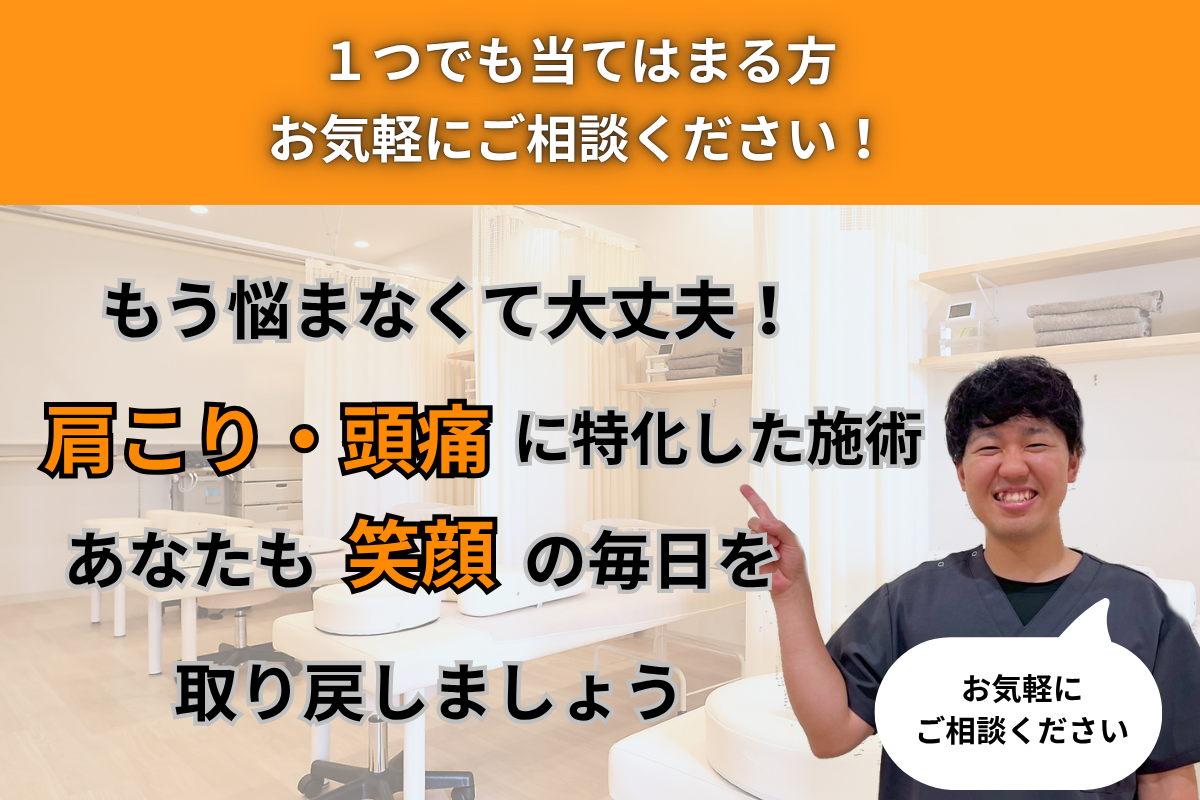 肩こり・頭痛の専門家として、一人ひとりに寄り添った施術を致します。